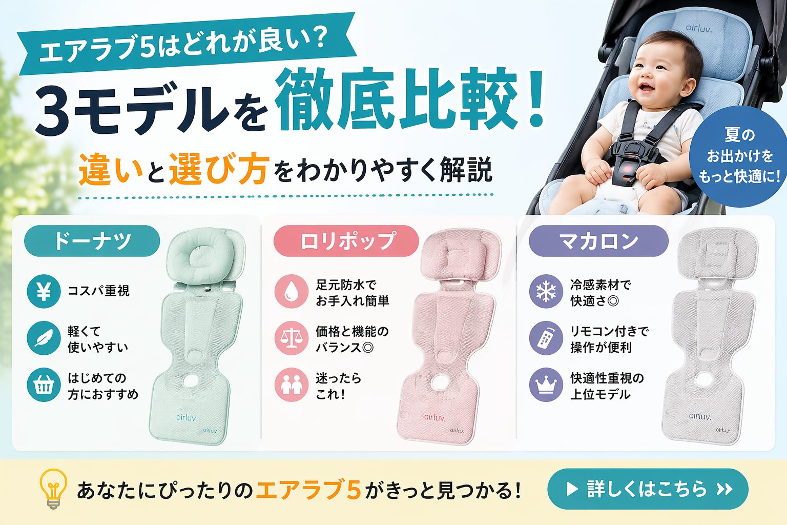 エアラブ5は「ドーナツ・ロリポップ・マカロン」の3種類があり、それぞれ価格や機能、快適性に違いがあります。