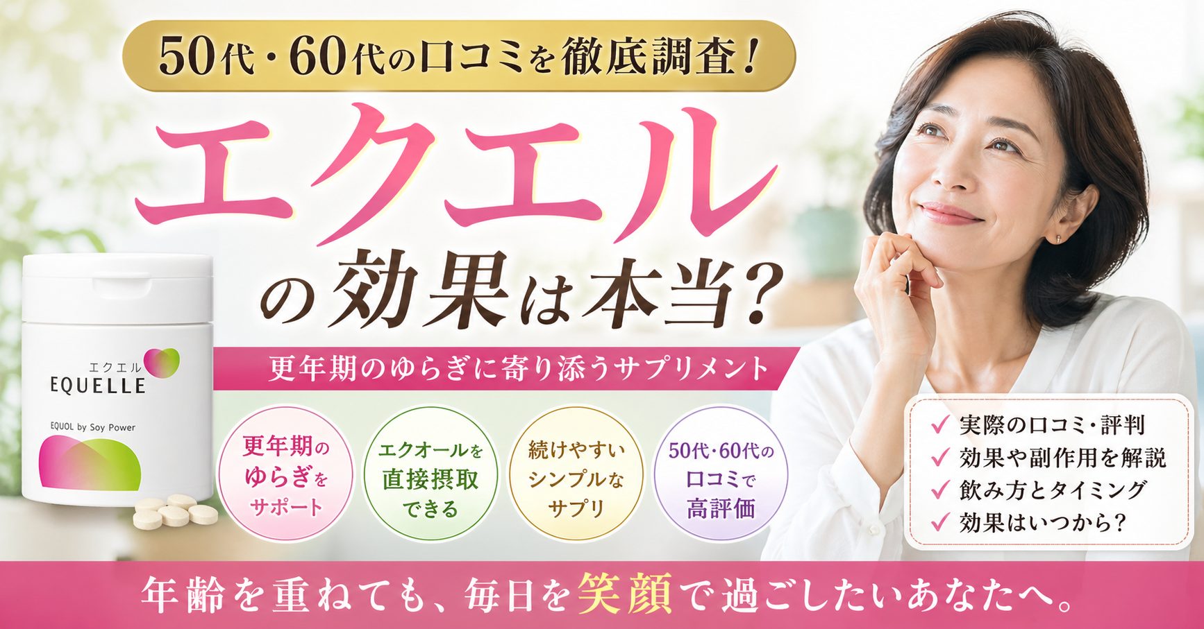 エクエルは、更年期のゆらぎに悩む人に選ばれているサプリです。